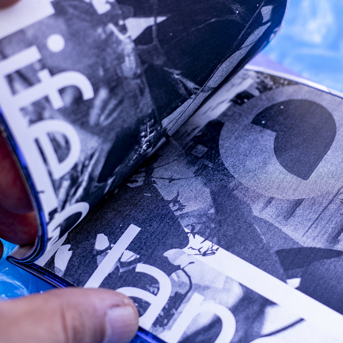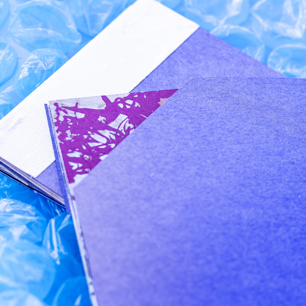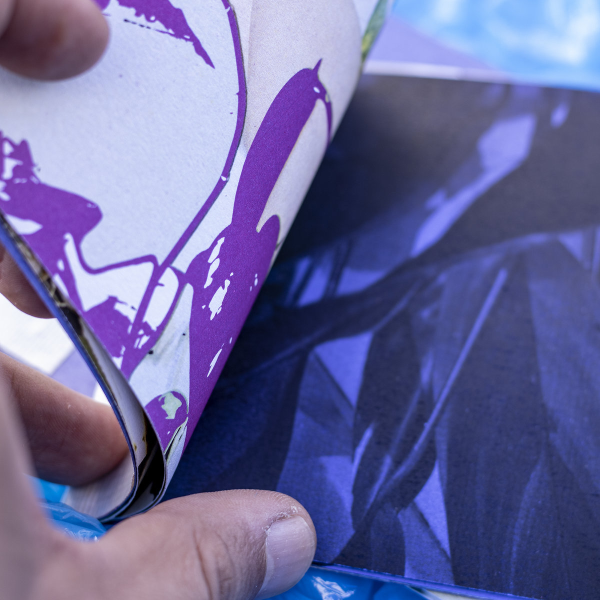 (1) 5" x 4", 24 page handmade experimental book with full-color & black/white printing on a variety of paper. Comes wrapped in a sealed poly bag. Book title: life on land.
